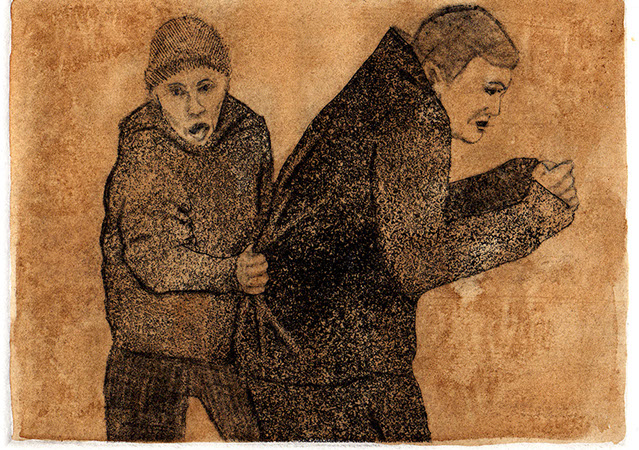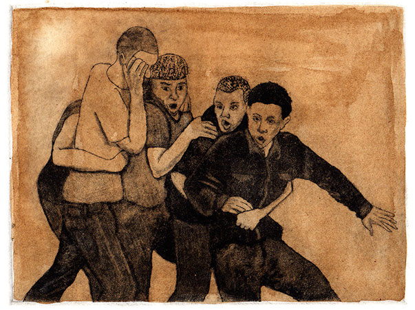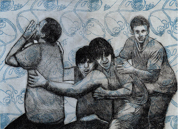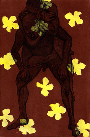 Untitled, etching with monotype and mixed media, 14" x 11"