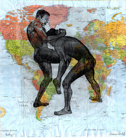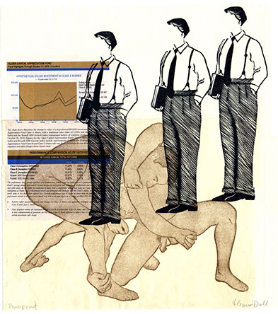 PowerPoint, relief with chine colle and mixed media, 14" x 12"
