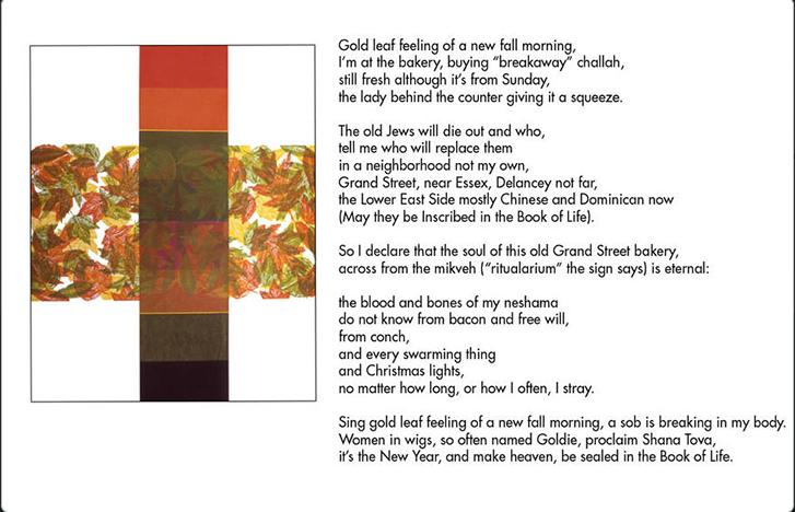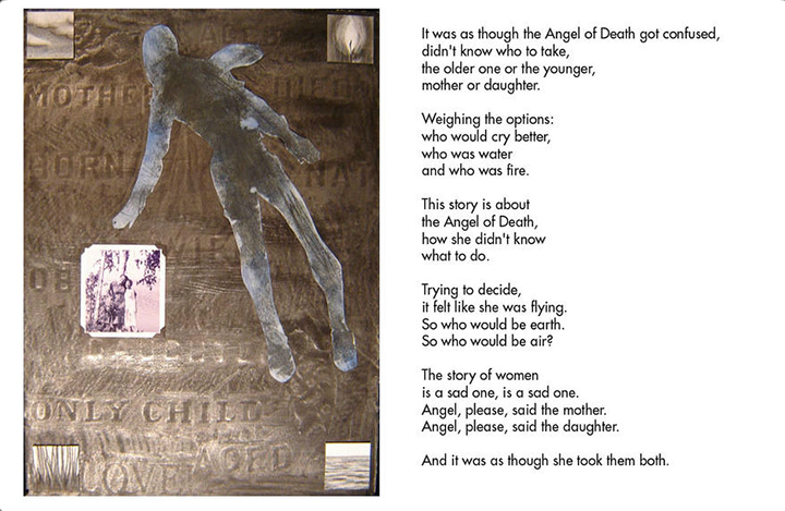 While in Brooklyn, I worked collaboratively with a local poet, Aliza Einhorn, on a project that combined Aliza's poetry with my images. Both of us were intrigued with the similarities of themes in our individual pieces. Aliza chose five existing pieces of mine and created new poems. I, as well, had access to Aliza's recent poems and created five new pieces based on them.