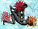 Cross Angle Pick with Roses, color etching with relief and chine colle, 13" x 11"