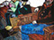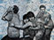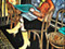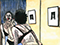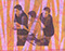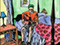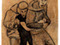 Luncheon in Italy, relief print with watercolor, 11" x 8"