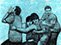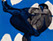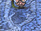 Flying Guillotine (blue), etching with monotype, 9" x 6"