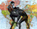 Grey's Dog, relief print with watercolor, 11" x 8"