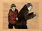 MJB, relief print with watercolor, 10.5" x 7.5"