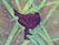 Untitled (3 pink flowers), etching with monotype with chine colle, 11" x 15"
