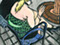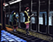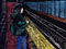 Waiting on the 6, relief print with watercolor, 10.5" x 7.5"