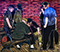 Musician, relief print with watercolor, 13" x 11", photo by Will Andrews