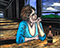 At Lia's Feet, relief print with watercolor, 13.5" x 10"