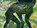 Flying Guillotine (green), color etching with relief and monotype, 9" x 6"